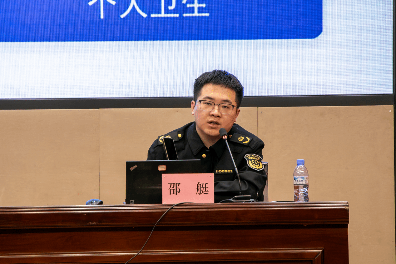 在食品安全培训环节,市监所邵艇同志围绕校园食品安全政策法规、现场自查要点及操作规范等内容进行了系统讲解。他结合《通用规范》与《操作规范》,详细阐述了食品采购、储存、加工、留样等环节的管理要求,并强调了“互联网+明厨亮灶”“浙食链”等数字化监管手段的应用。