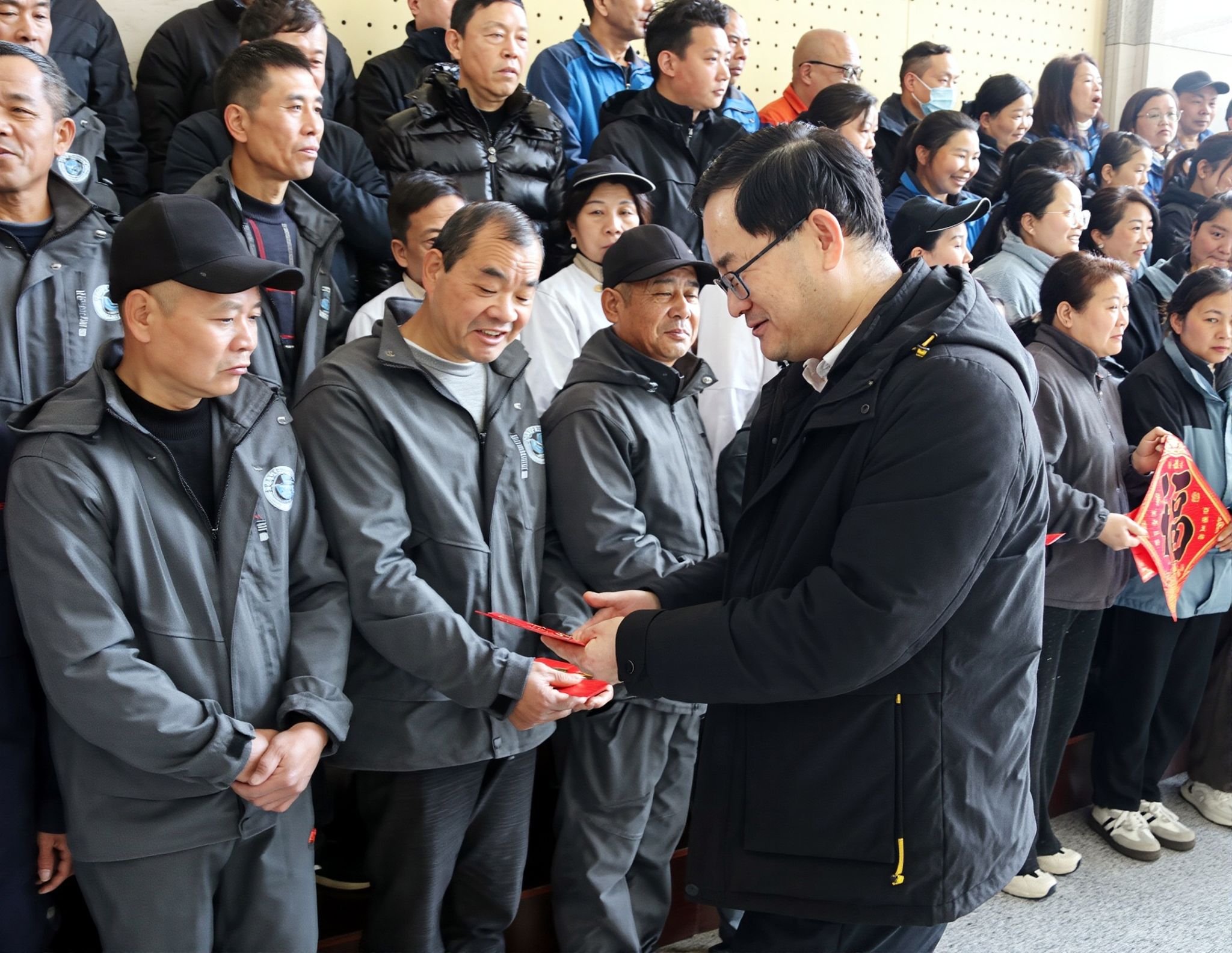 慰问现场气氛温馨热烈。王军副校长与员工亲切交流,感谢大家过去一年的辛勤付出与贡献。他特别叮嘱,节日期间务必牢记安全,注意防火防盗及用电安全,确保平安过节。同时,他勉励大家在新的一年里继续立足岗位、敬业奉献,共同为服务学校事业发展谱写新篇章。