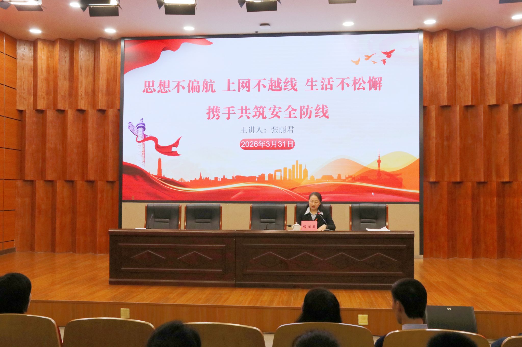 公司党总支副书记张丽君为全体职工讲授了一堂深刻而生动的安全教育课。课程紧密结合公司实际,内容翔实、案例深刻。在思想教育层面,张书记强调要坚定理想信念,提高政治站位,筑牢意识形态安全屏障;在网络行为规范方面,要求全体职工增强法治观念,严守网络言行底线,自觉维护清朗的网络空间;针对公司业务特点,张书记重点就维修施工安全、食堂食品卫生安全等关键领域提出了明确要求,强调要时刻紧绷安全之弦,严格落实操作规程,确保各项服务保障工作安全、平稳、有序运行。