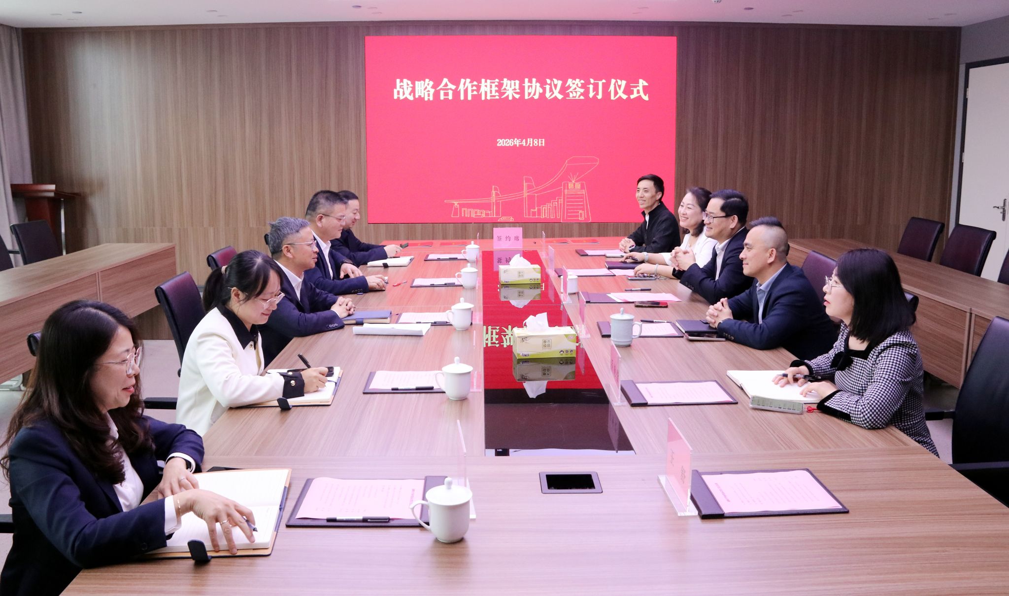 在与会嘉宾的共同见证下,双方代表正式签署战略合作协议。根据协议,双方将在党建共建、人才培养、便民服务以及新能源设施建设等方面开展全方位、多层次的合作。
