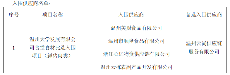 二、项目名称:温州大学发展有限公司食堂食材比选入围项目(鲜猪肉类)