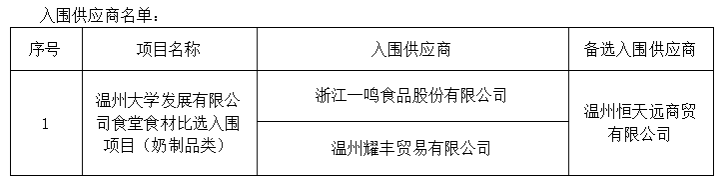 二、项目名称:温州大学发展有限公司食堂食材比选入围项目(奶制品类)