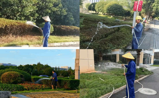 每一株绿植的盎然生机,都浸润着绿化养护人员的辛勤汗水。他们顶烈日、战高温,在这场持续的高温“烤”验中,全力以赴守护校园的一抹抹绿意与生机。