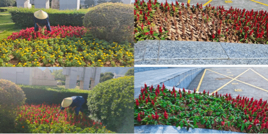 面对这一困境,草花养护组的工作人员严格恪守养护标准,对尚存的绿植加倍用心呵护,同时高效开展枯萎区域的实地统计,并积极制定后续补种规划。与此同时,外围绿化养护组推进浇水频次和力度,采取科学灌溉方式:既确保高大乔木的深层根系吸足水分,也为低矮植被的叶面补充湿度,有效降低高温灼伤风险。