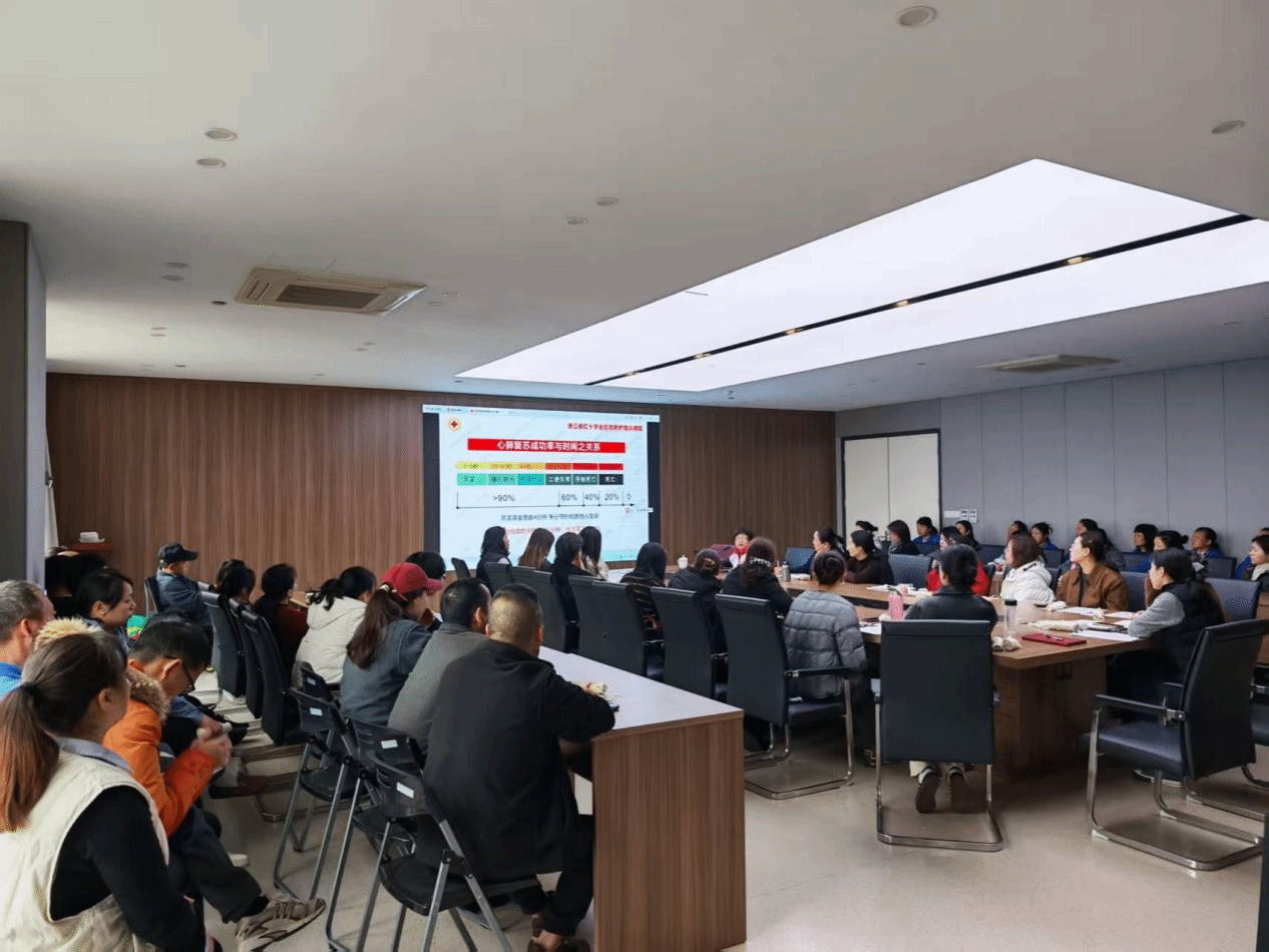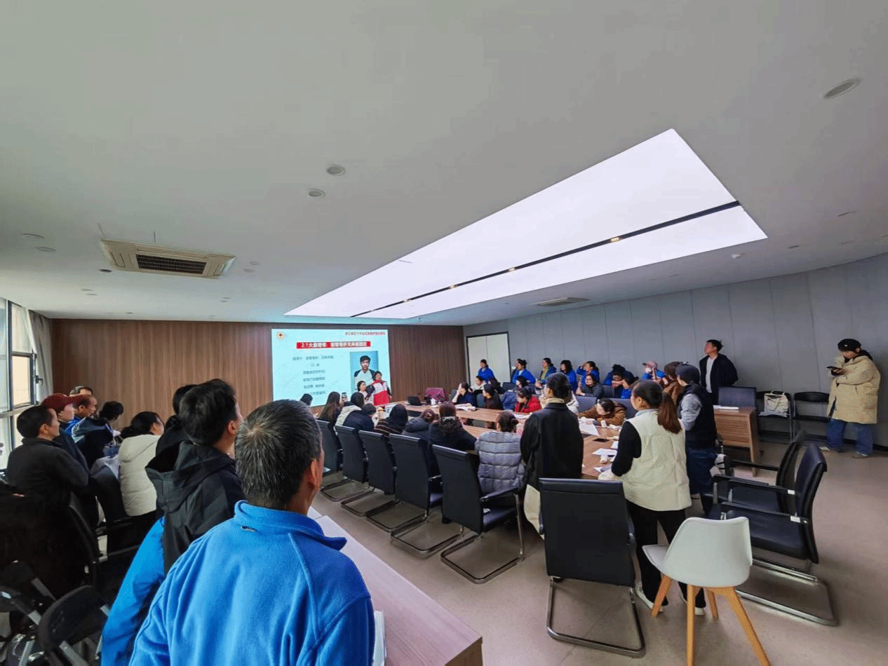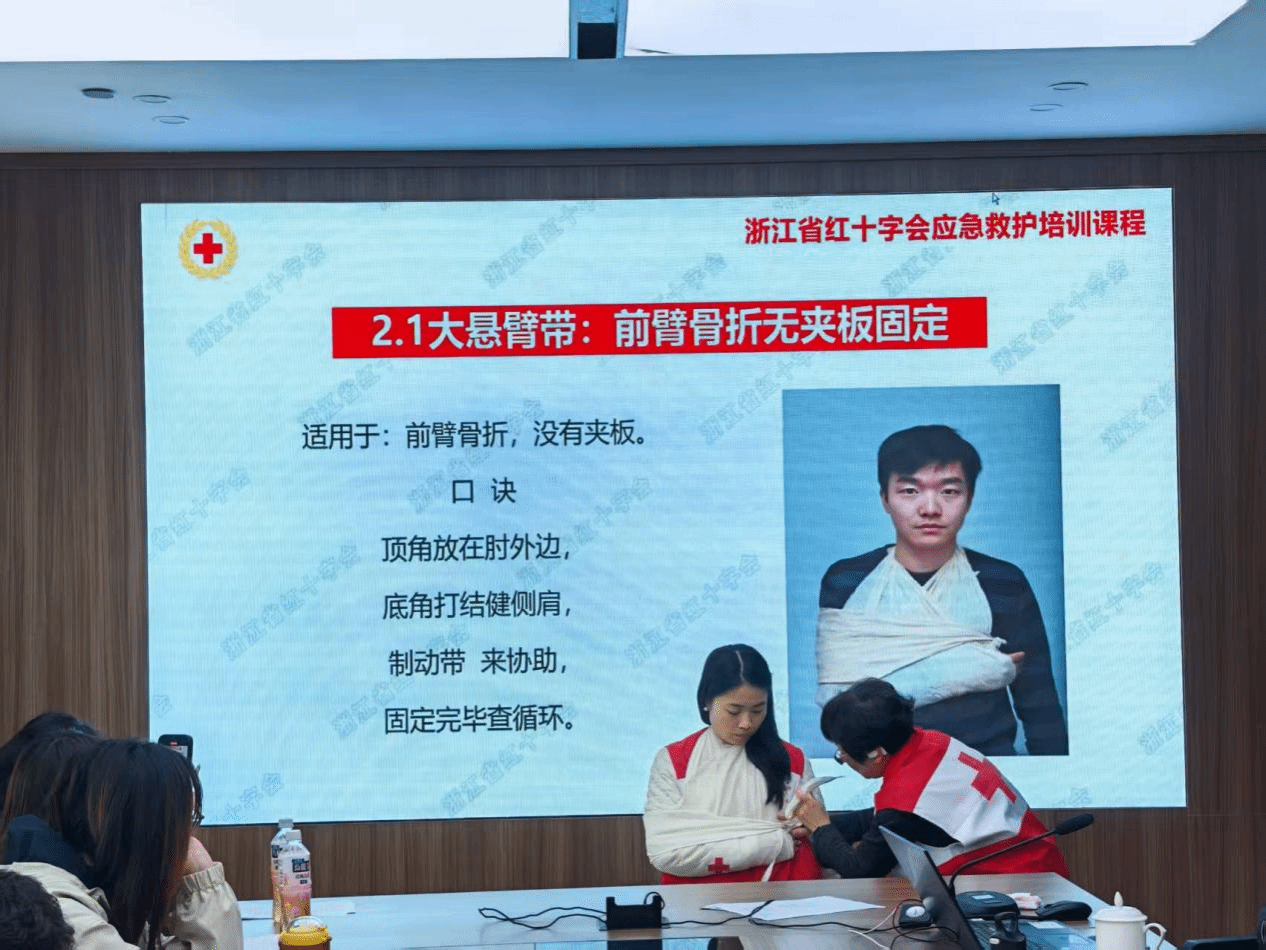 培训特邀浙江省红十字会专业讲师姜文莉老师主讲,以“理论+演示”的形式,为职工们系统讲解核心急救知识:如重点解读心肺复苏“黄金4分钟”的重要性,通过数据图表直观展示“急救越早,成功率越高”的规律,让职工深刻认识到及时施救的关键意义。细致拆解胸外按压部位、开放气道手法、AED操作流程等核心要点,结合人体解剖图与模拟演示,将抽象知识转化为清晰可学的操作规范;同时围绕创伤包扎、气道异物梗阻急救等场景,梳理实用口诀与操作步骤,现场互动热烈,职工们认真记录、踊跃提问,学习氛围浓厚。