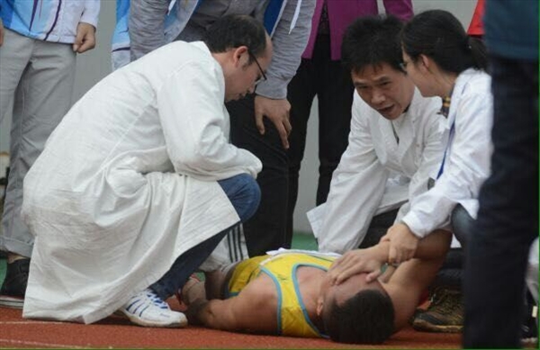 2015年11月10日-13日,第14届浙江省大学生运动会在温州大学举行,根据后勤保障的统一部署,需现场设置医疗点,解决在运动会期间所有人员的身心不适紧急情况。急救药品、运动损伤性药品、常用药品、运动员宾馆备药、担架,除颤仪、呼吸器囊等配备齐全,整装待发。每一天的早上七点四十分就能看到身着白褂的医疗人员和志愿者们驻守服务站,开始一天的工作,直至夜深,直到运动员、裁判员等全部人员安全退场,医疗站的灯光才熄灭。一位医师拍下了夜灯下的温大体育场,“不为人知的田径场的另一面……不可否认的漂亮……”。运动员在赛场上拼搏征战,裁判员在赛场评判裁夺,赛场工作人员在台前幕后统筹协调……医疗服务的工作人员就像是后背的倚靠,“医生,我这边有些拉伤”“医生,有没有治喉咙疼的药”“医生,有没有绷带”……总是能闻到他们身上的云南白药味,总是能看到他们娴熟的为运动员清创消毒、包扎伤口、固定绷带,总是能看到他们俯身询问,怎么样了,现在感觉好些了吧?