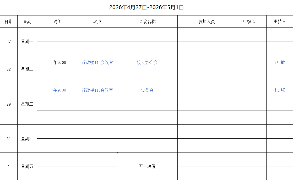 资产公司(发展公司)第9周会议安排(2026年4月27日至2026年5月1日)